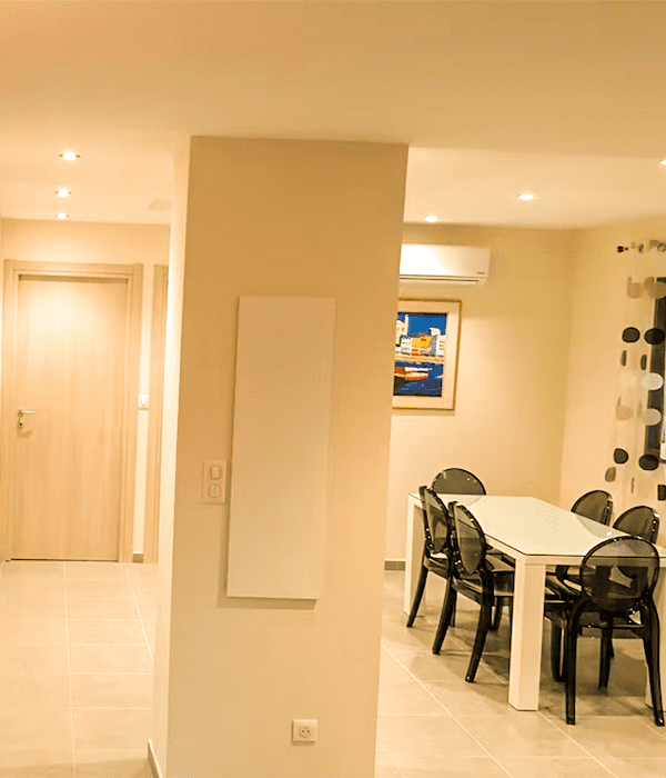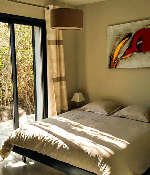 villa de haut standing d'une dimensions de 100m² dotée de 2 chambres , d'une piscine , de 2 salles de bains ,d' un parking pouvant acceuillir 2 véhicules , entièrement rénové et climatisé Se situant à quelques minutes de la plage avec un jardin fermé et arboré villa composé de 2 chambres, dont une suite parentale avec sa salle d'eau, une salle de bain, et une grande terrasse de 20m2 entièrement équipée Cuisine entièrement aménagée et équipée Wifi disponible gratuitement
